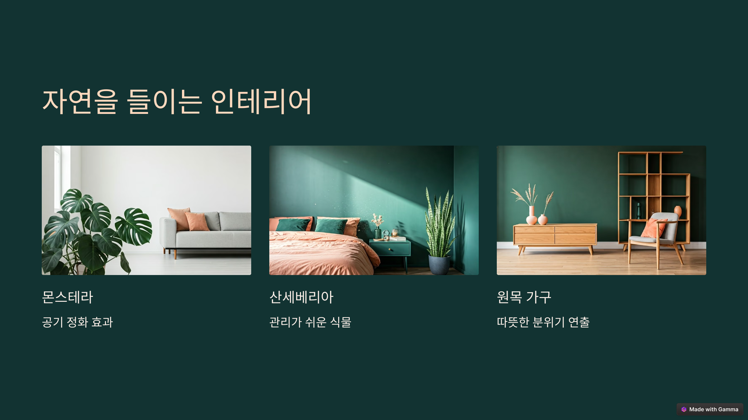 작은 집이라도 자연 요소를 더하면 마음까지 넓어집니다.