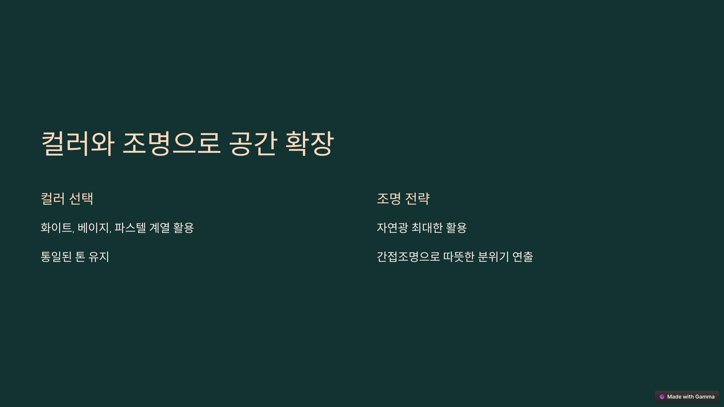 2. 🎨 컬러와 조명으로 넓어 보이는 공간 연출