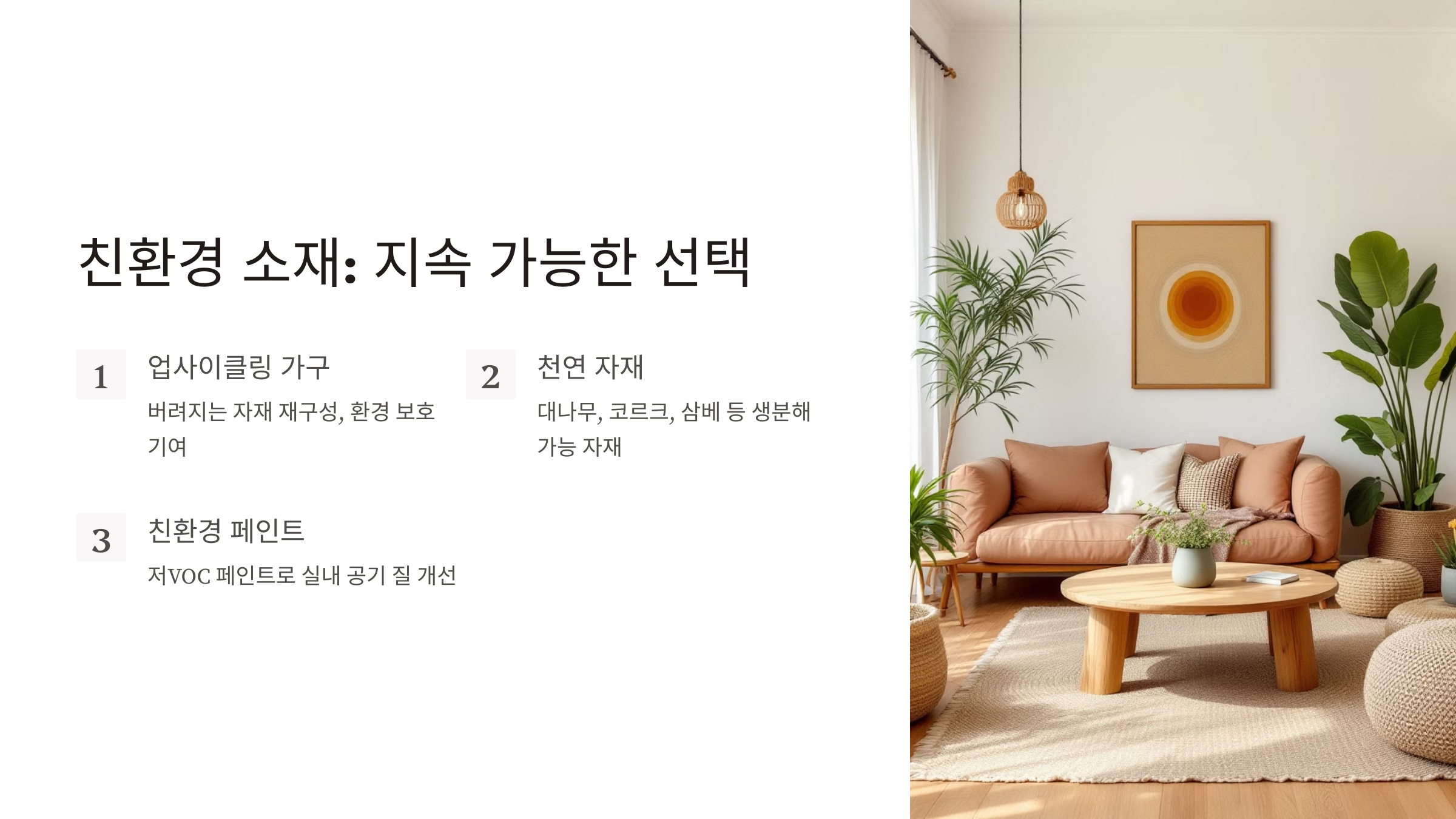 🏡 1. 친환경 소재: 지속 가능한 선택