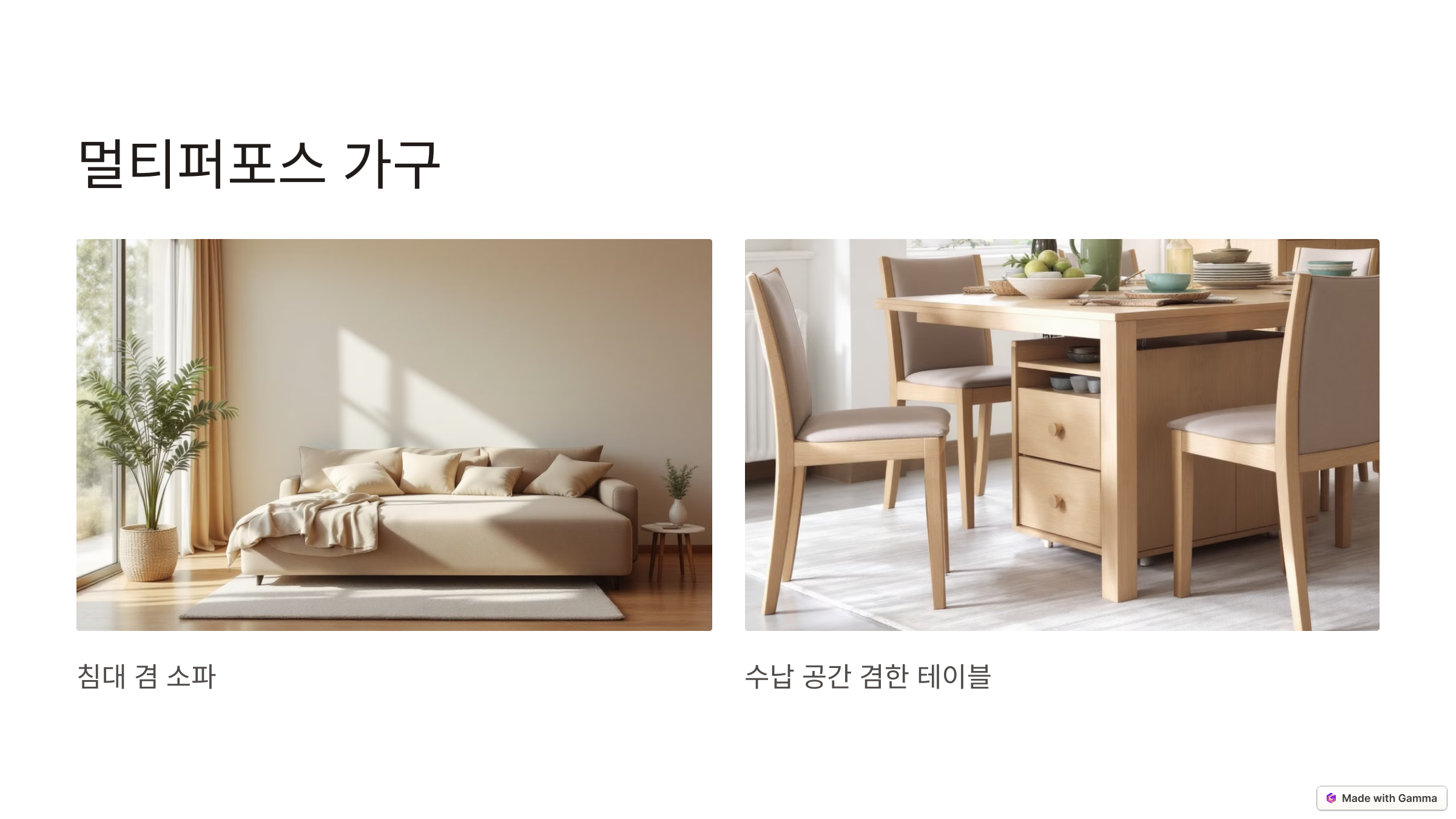예시: 침대 겸 소파, 수납 공간을 겸한 테이블