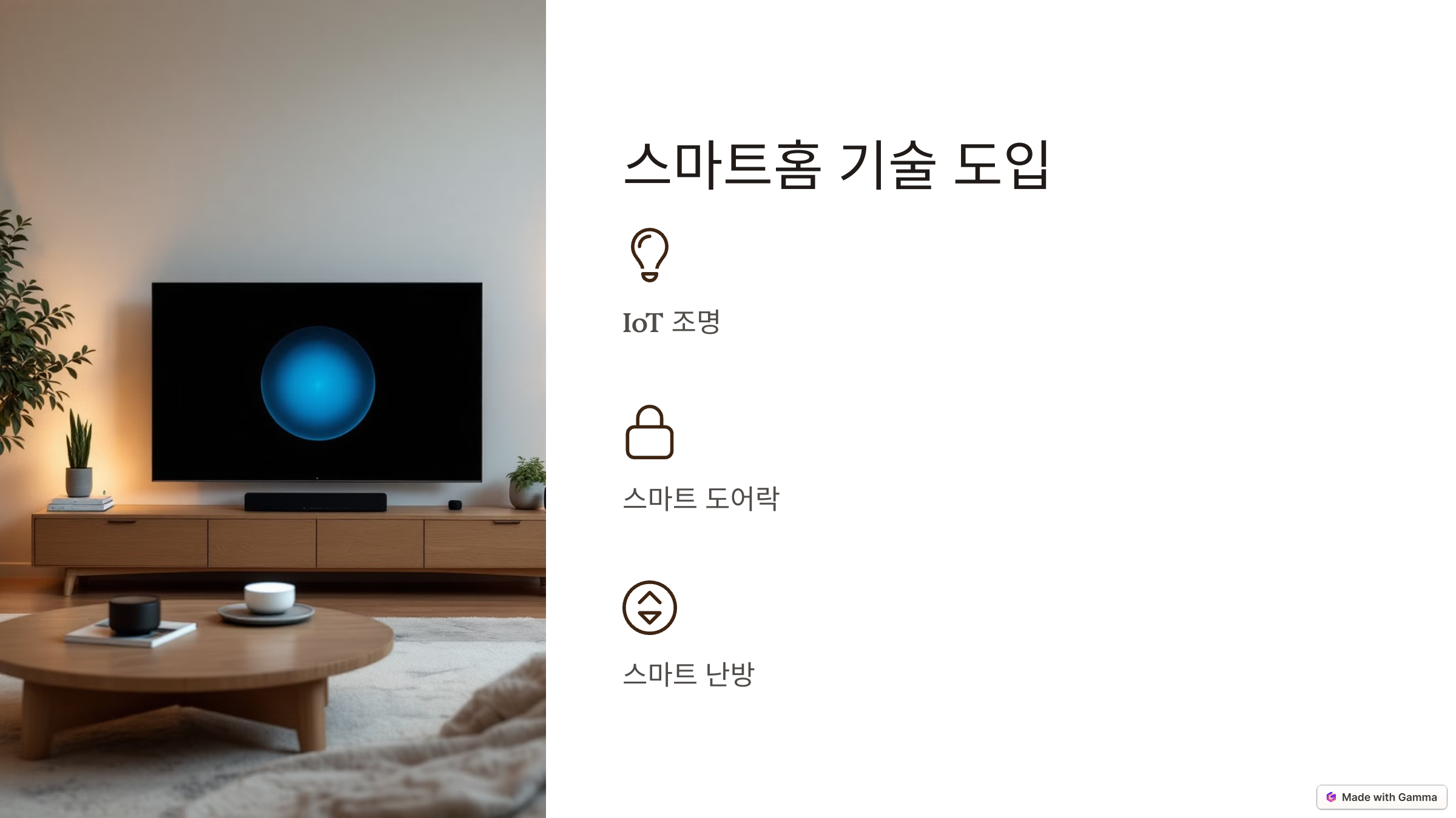 경제적이고 효율적인 공간 활용을 위해 스마트홈 기기를 도입하는 가정이 늘고 있습니다. 조명, 난방, 보안 시스템을 스마트폰으로 제어할 수 있는 기술이 특히 인기입니다.